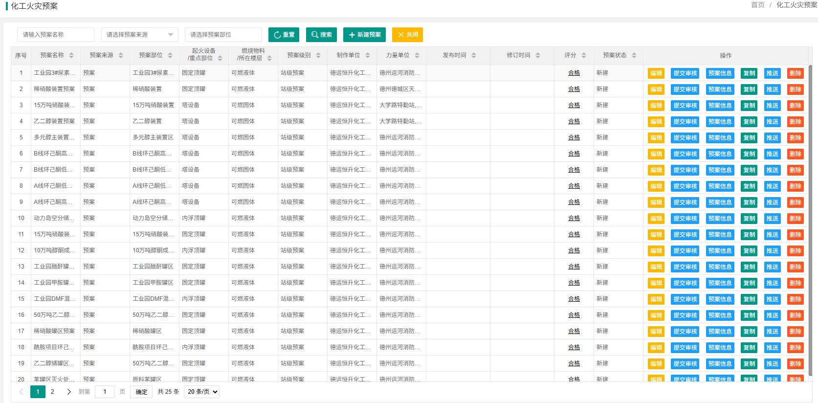 ● 预案制作紧贴实战规范和灭火战斗行动要则,系统提供多种灾害预案模版,不同模版支持不同的作战任务和技战术方法,每项任务可明确到任务单位、任务车辆、行动方法、使用器材、作业位置、关联线路。