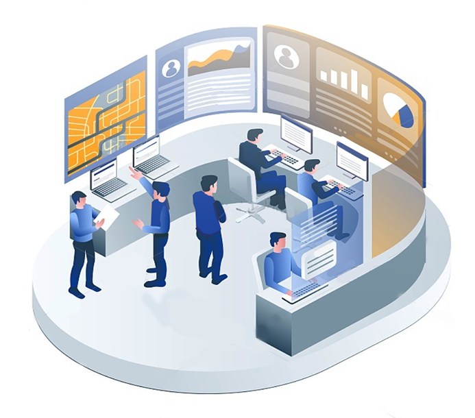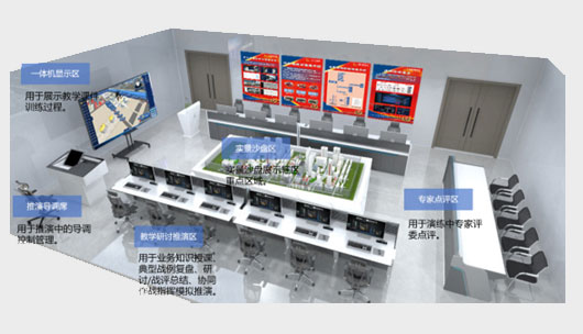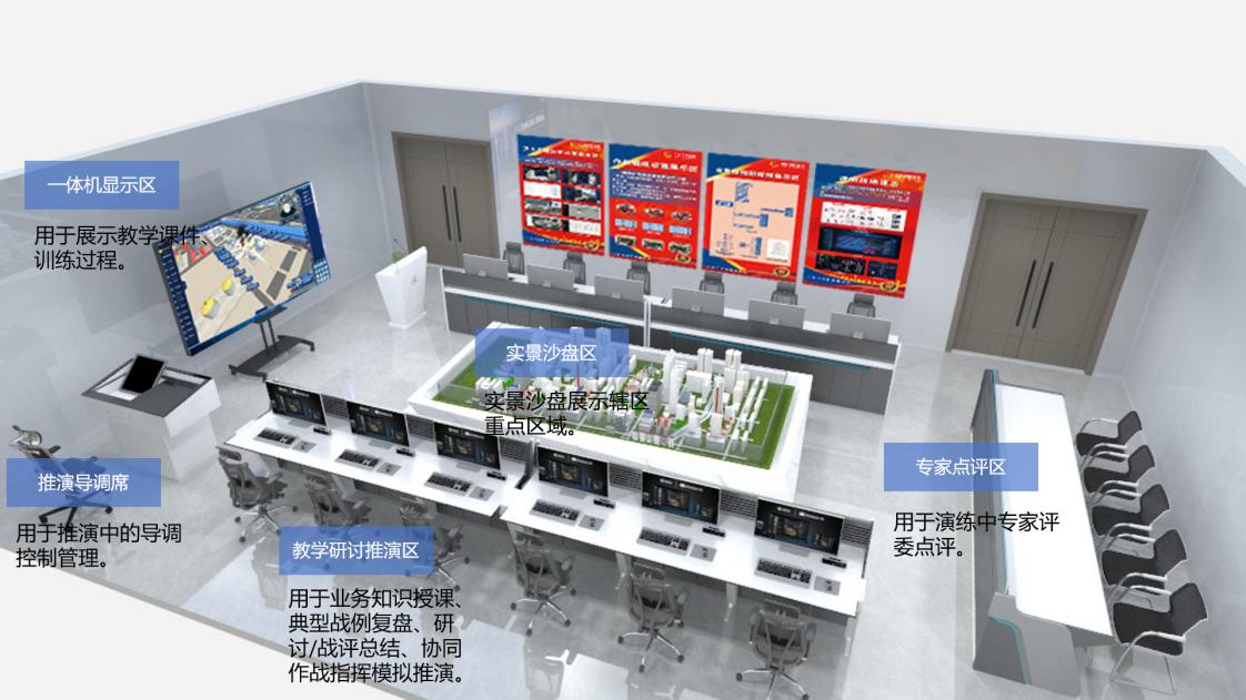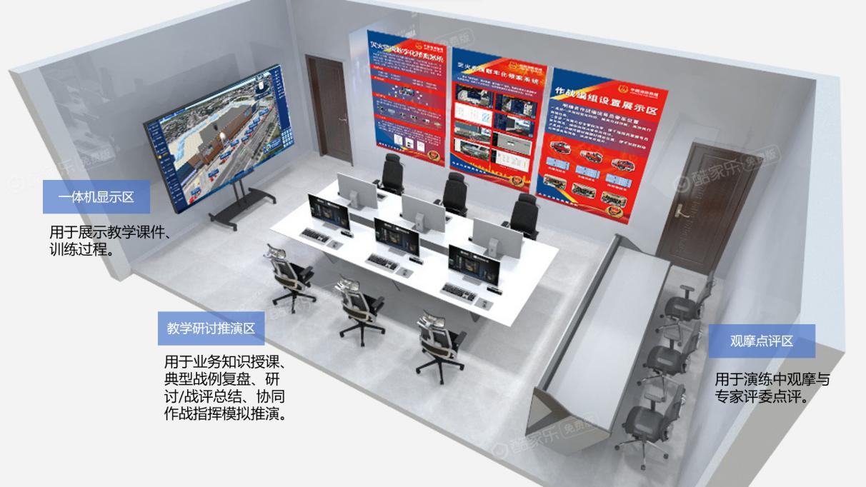 (三)配套硬件支持 配备激光投影(可选配LED大屏、平板一体机等)、指挥终端、训练坐席等设备,结合现场装修、综合布线及配套训练考评软件,打造集显示、操作、训练、研讨于一体的硬件环境,保障系统稳定运行与高效使用。