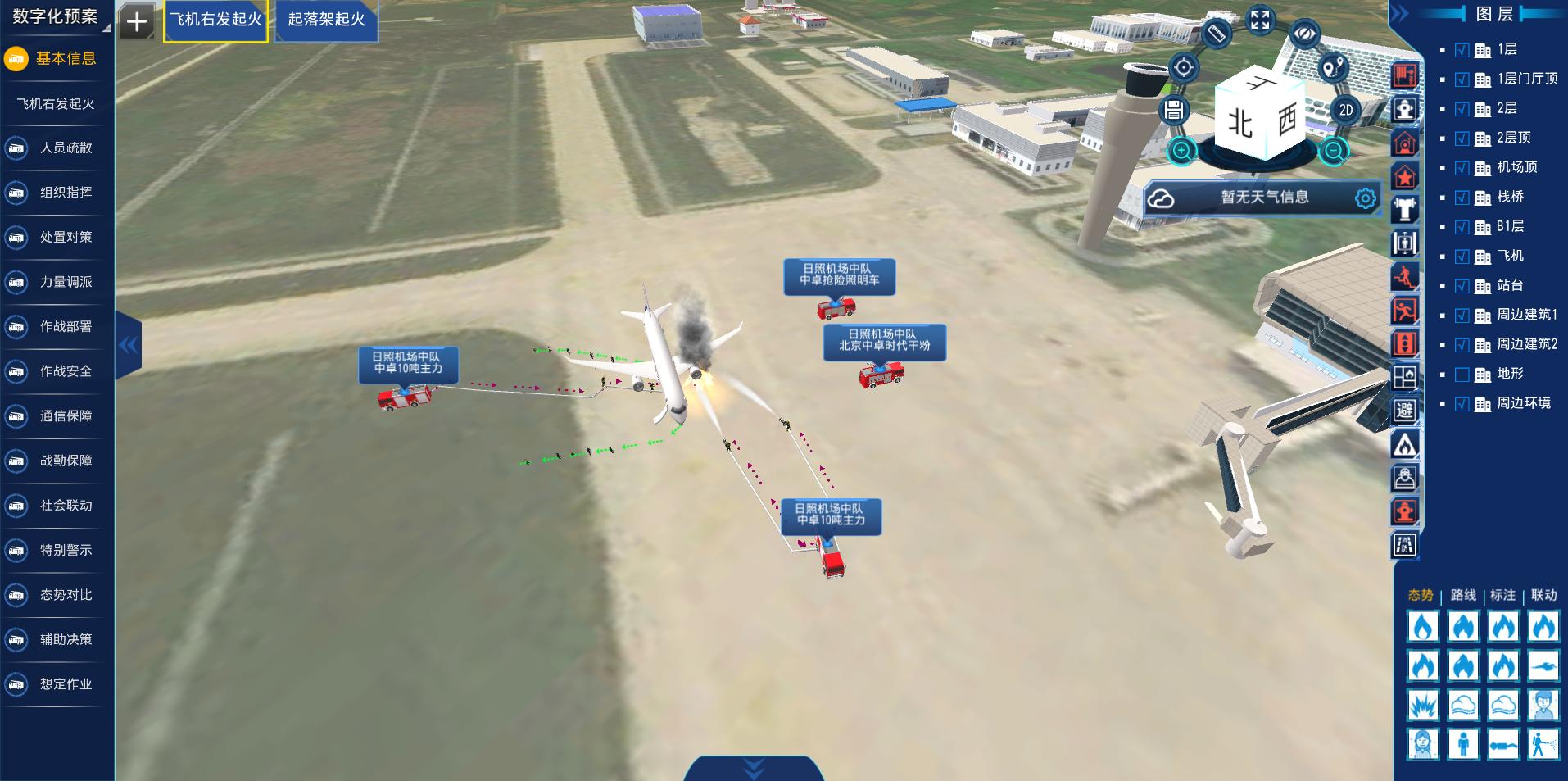 3. 贴合实战业务型强:根据机场性质支持分别制定建筑预案与飞行器预案,分别满足不同类型灾害处置流程需求。